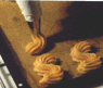 zusammendrehen, damit der Teig schön gleichmässig aus der Tülle kommt. |