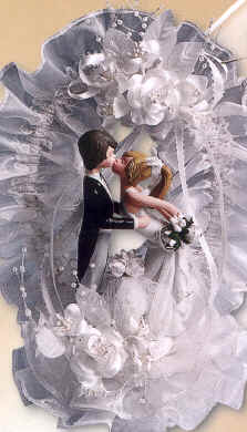Küssendes jugendliches Brautpaar unter Tüllkranz