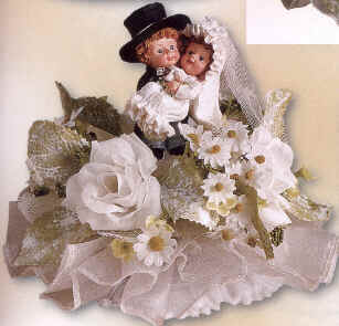 Bräutigam trägt Braut auf Tüllsockel