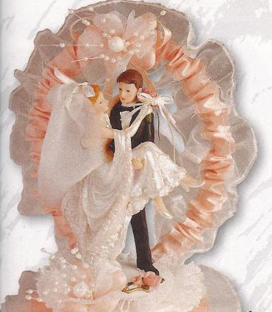 Bräutigam trägt Braut mit lachsfarbenem Tüllring und Spitze