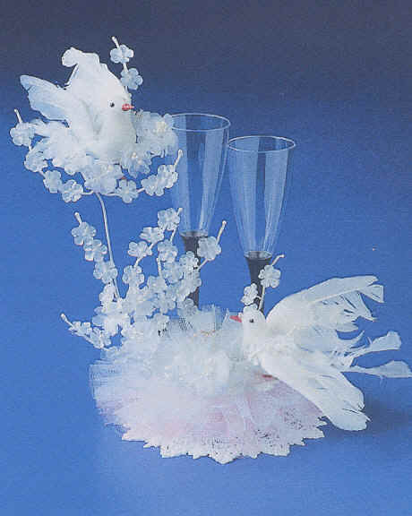 Tortenaufsatz mit Tauben und Sektgläsern